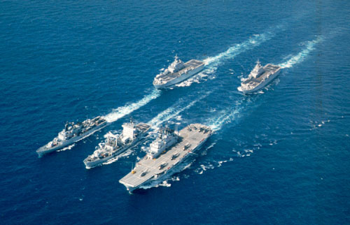 ou de commandos. Le successeur du Garibaldi doit entrer en service en 2007. Nettement plus lourd que son aîné (26660 tonnes), il sera capable de transporter 450 soldats en plus d'un équipage de 860 hommes. Le parc aérien de ce grand bâtiment devrait être composé de 12 appareils. |