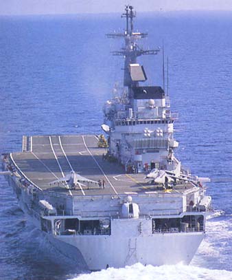 | Longueur : 180,2 m (pont d'envol 173,8) | Appareils embarqués : 8 Harrier AV-8B II , 4 SH-3D/EH-101 |