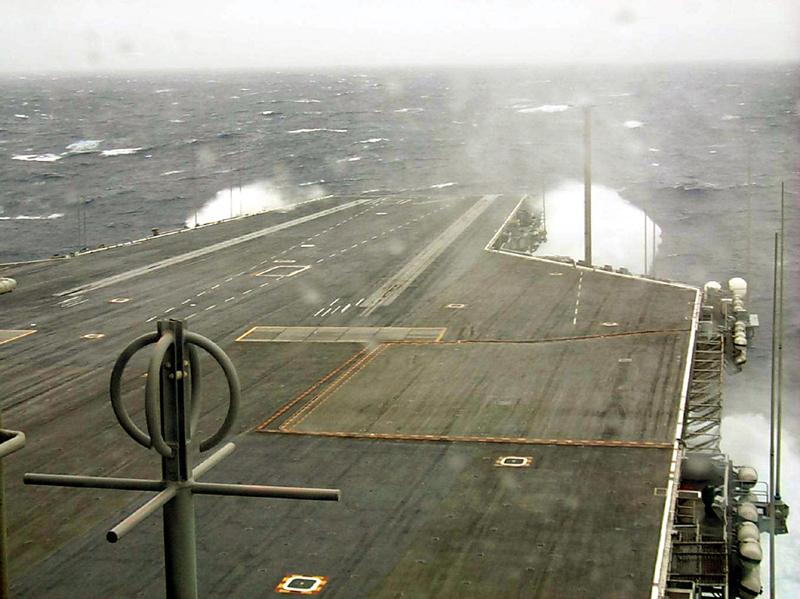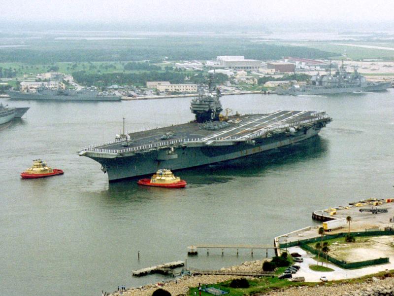 | C'est le dernier porte-avions à propulsion classique construit par les Américains. A l'origine, il devait être équipé d'une propulsion nucléaire. Il restera en service jusqu'en 2018. |